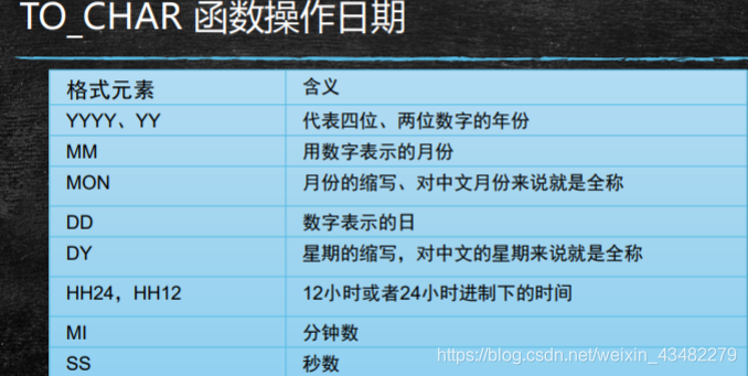 用于将日期或时间戳转换成varchar2类型字符串,要指定格式字符串